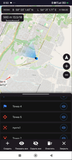 Программное обеспечение предназначено для визуализации текущего местоположения пользователя на картографическом фоне по данным от глобальной навигационной спутниковой системы с использованием картографических данных. К сферам применения относятся навигация по оффлайн-картам, геодезические расчеты
