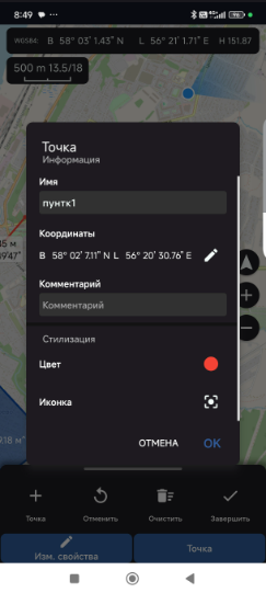 На карту можно добавлять различные условные знаки, а также линии, области, окружности.